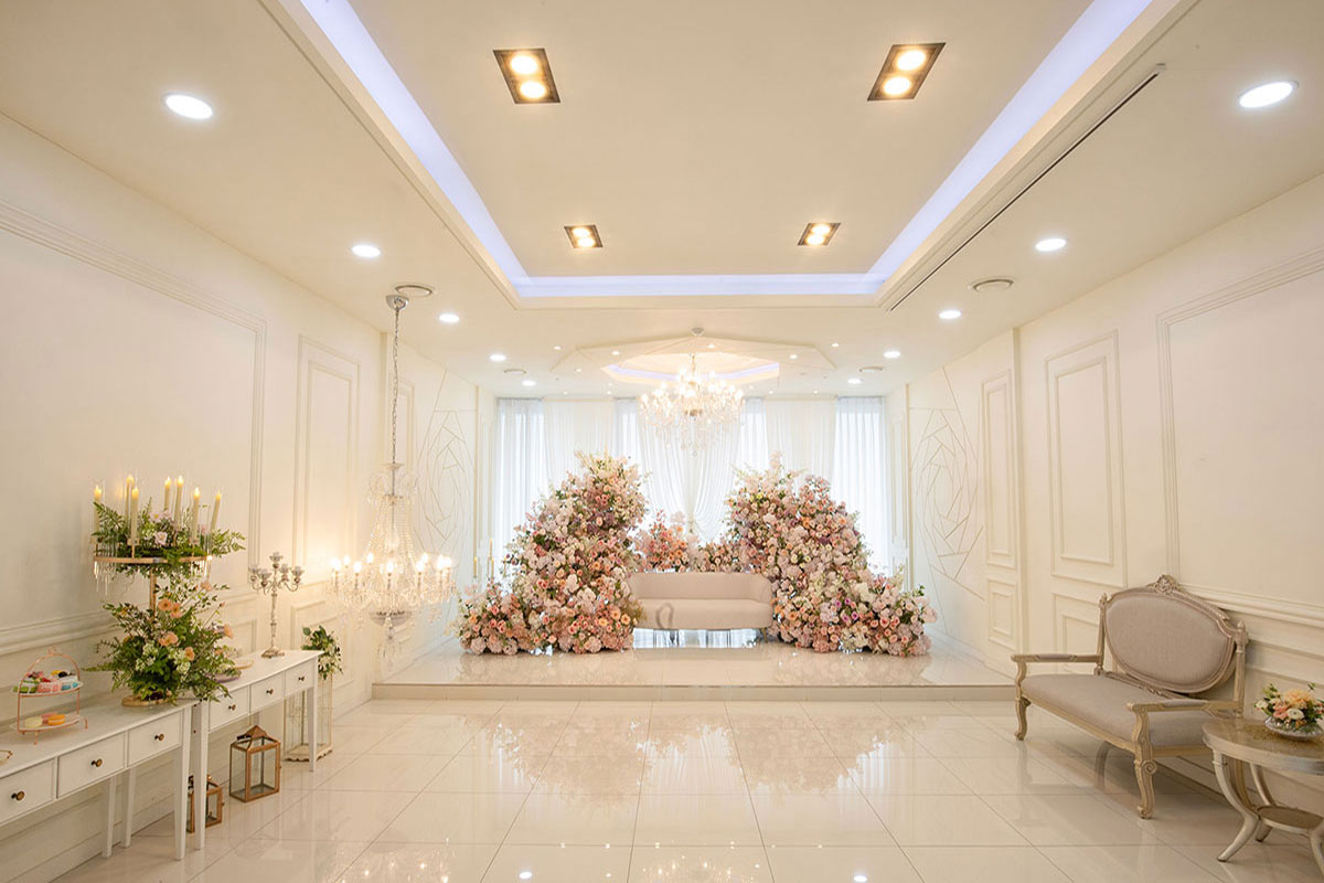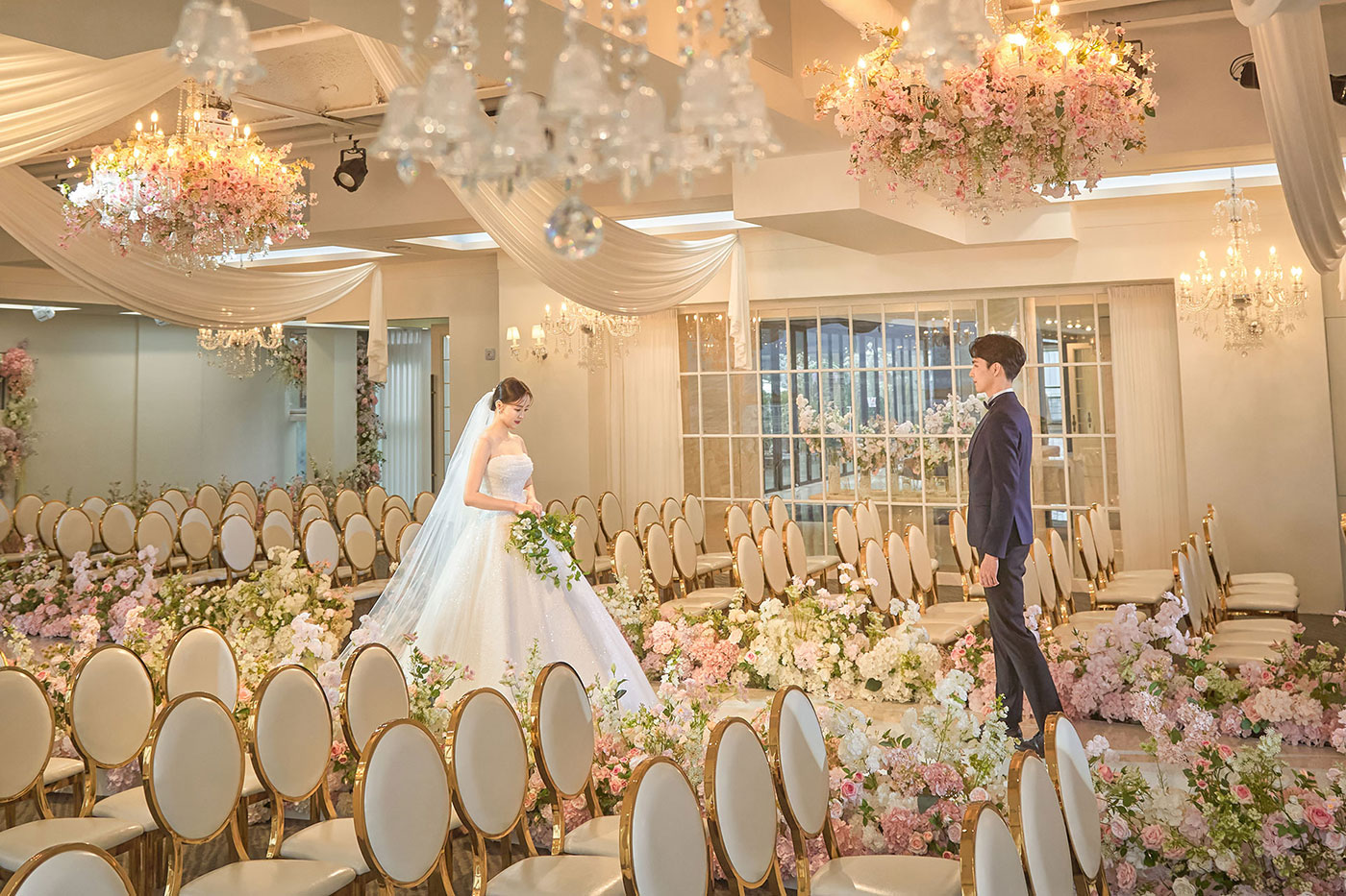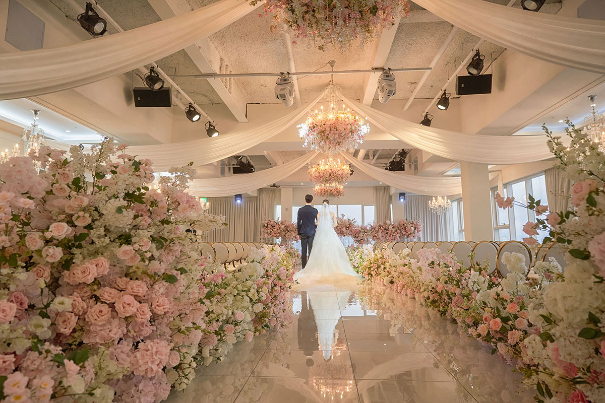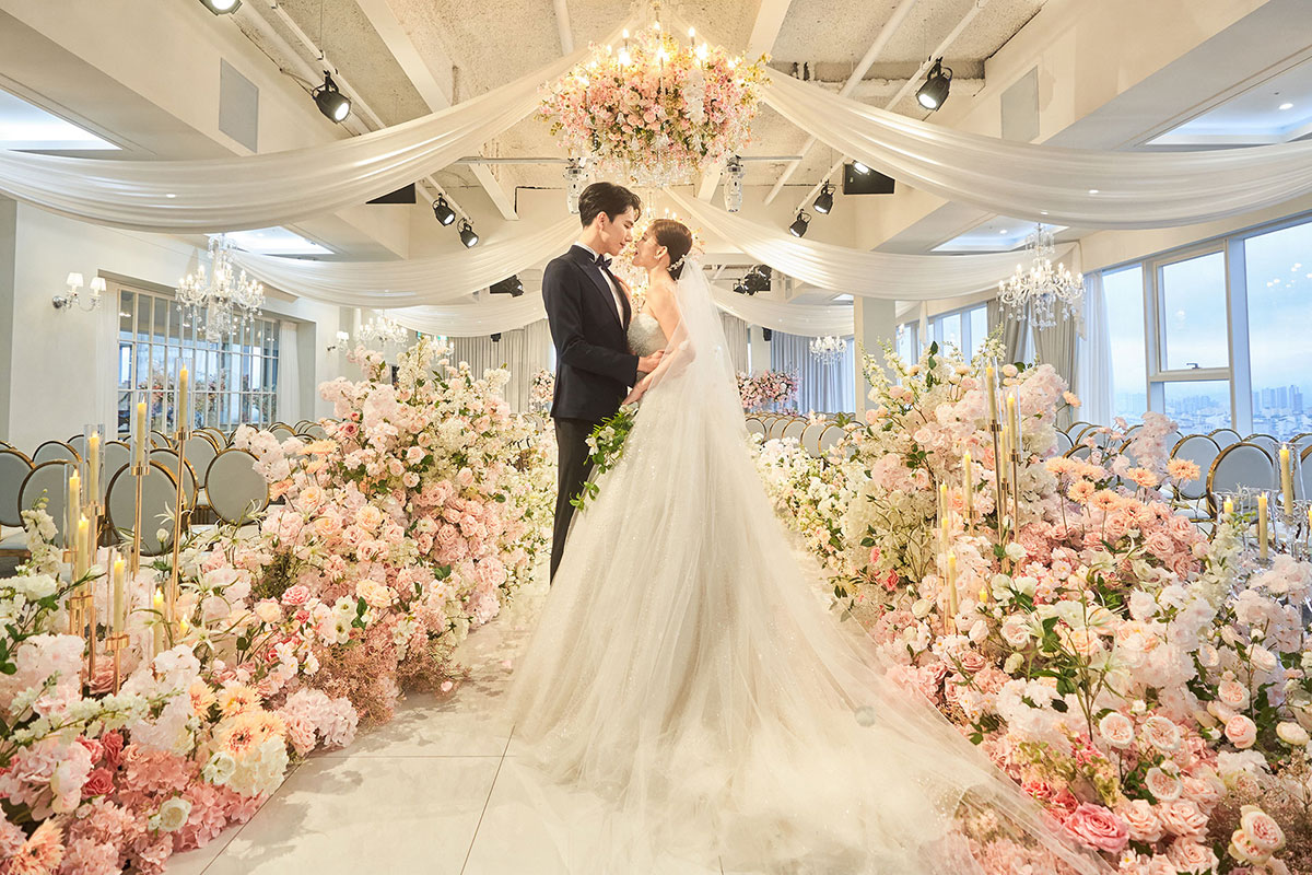 따스한 빛으로 채워진 웨딩 공간과